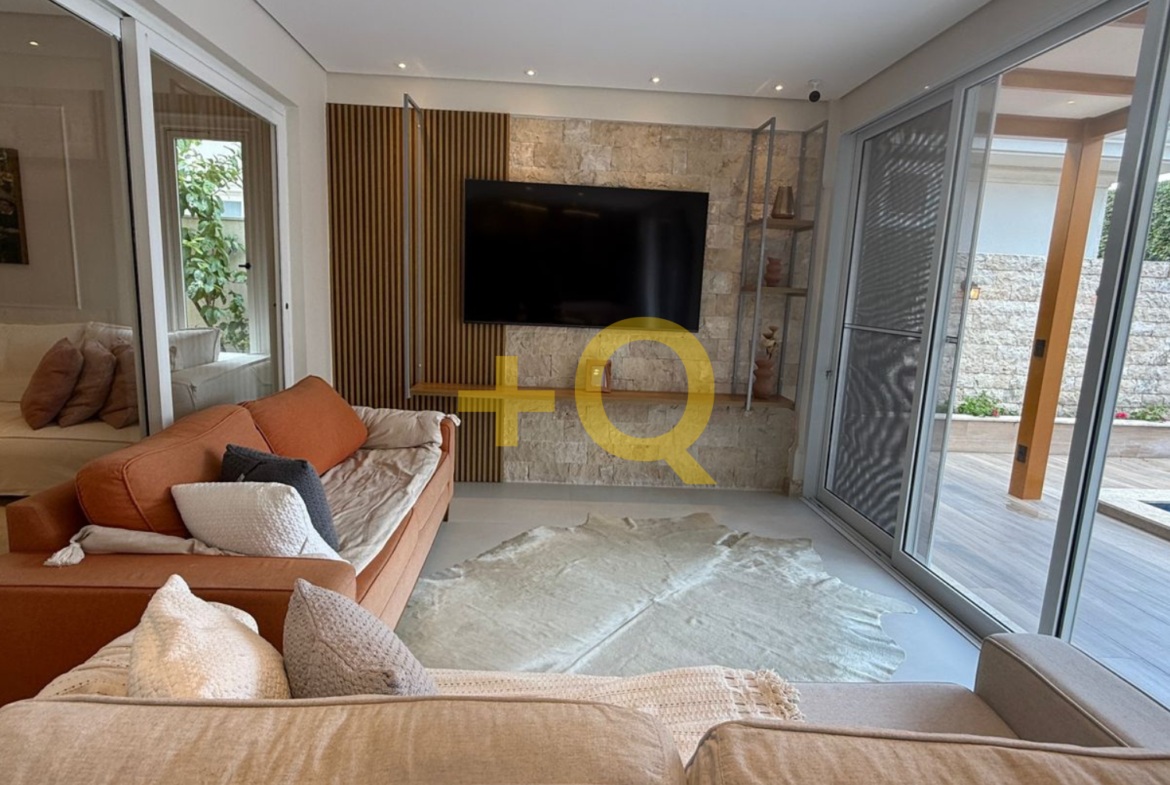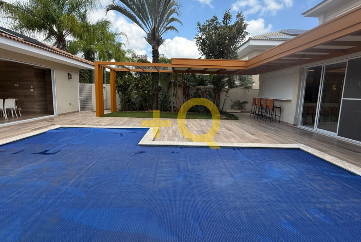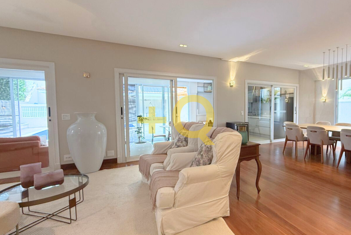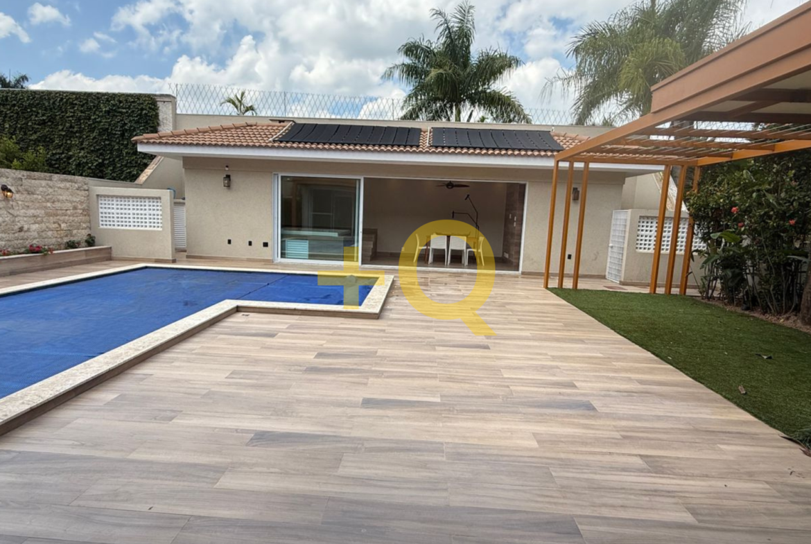 Com 600 m² de terreno e 494 m² de área construída, o imóvel apresenta uma planta bem distribuída, ambientes amplos e área de lazer completa integrada ao jardim.
