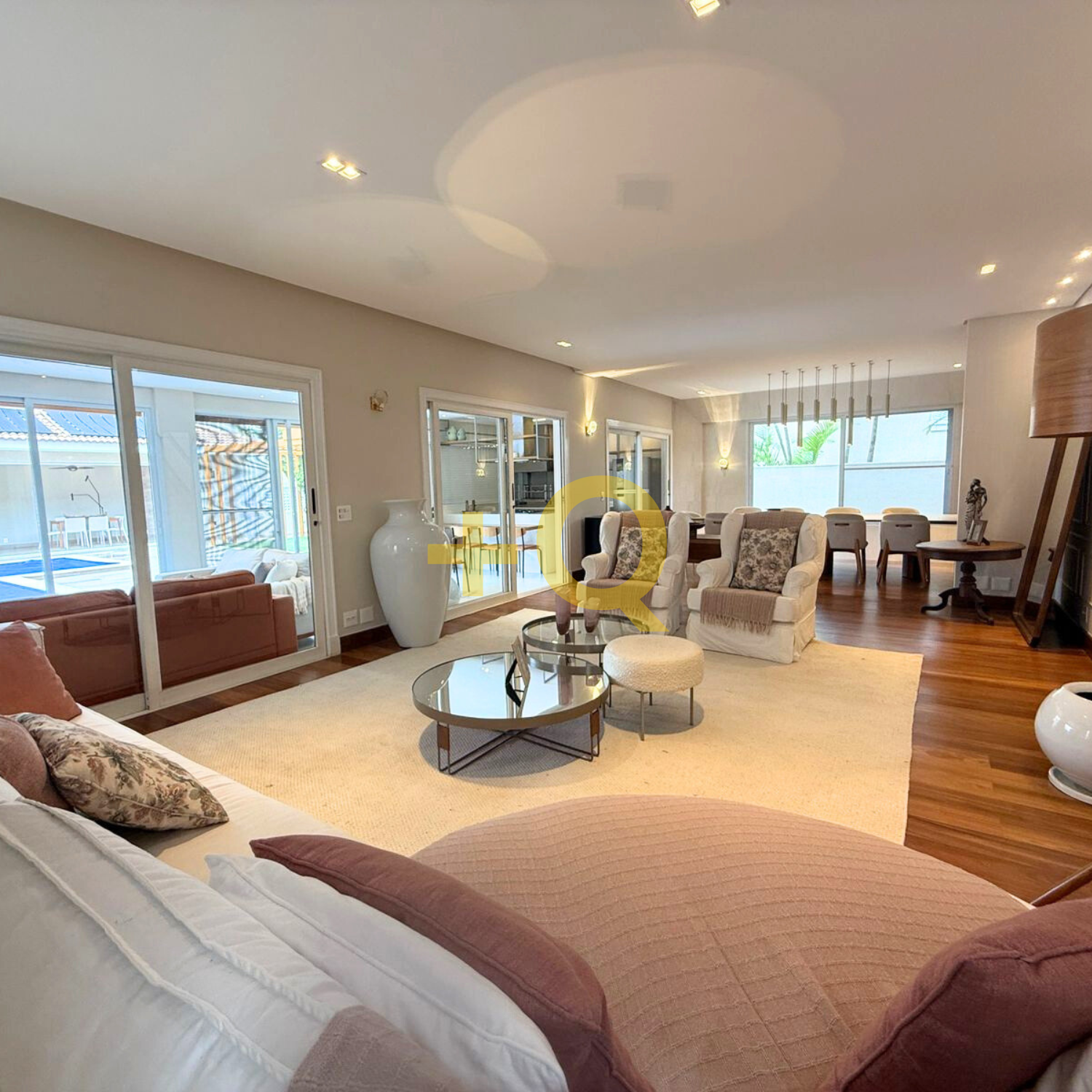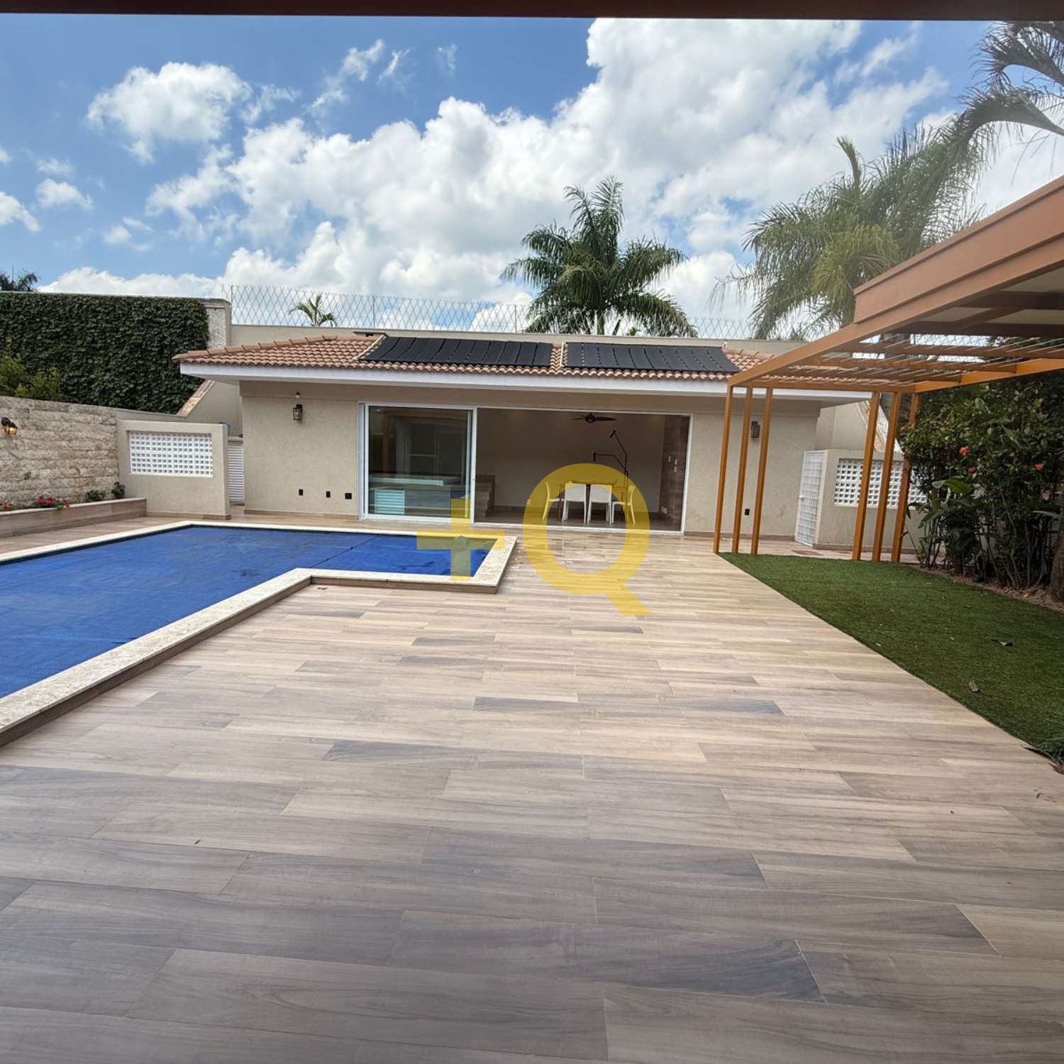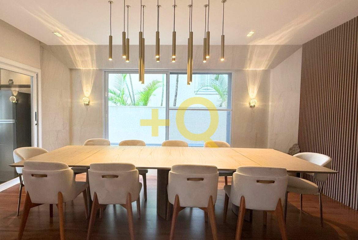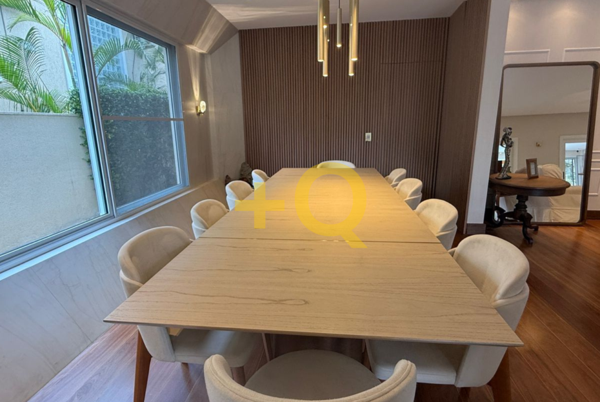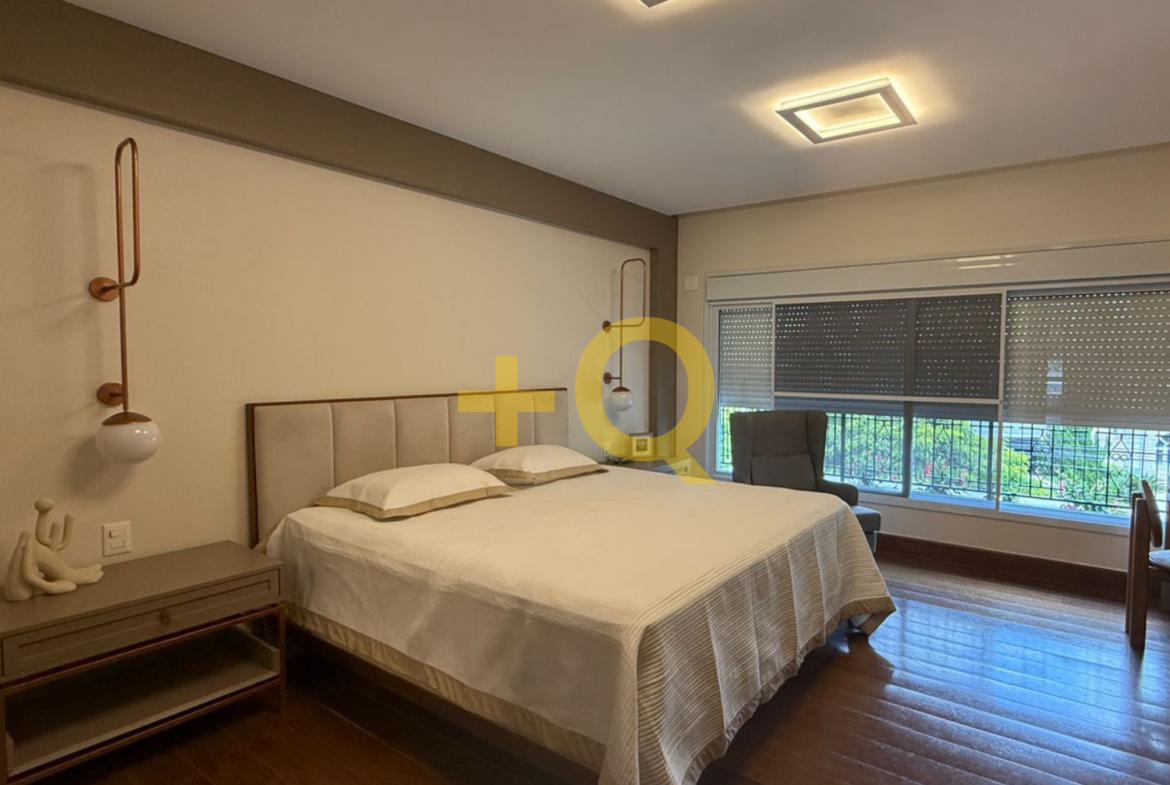 Com 600 m² de terreno e 494 m² de área construída, o imóvel apresenta uma planta bem distribuída, ambientes amplos e área de lazer completa integrada ao jardim.