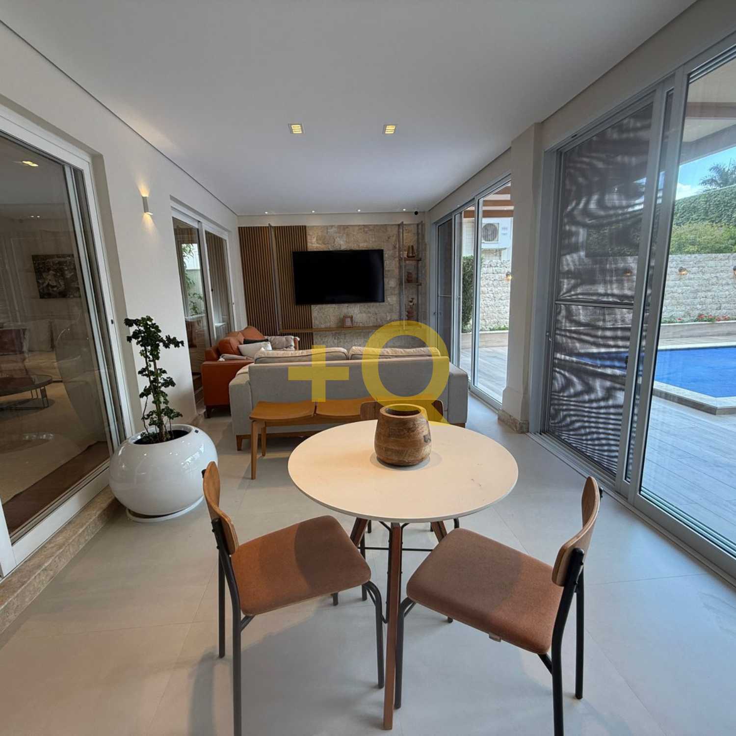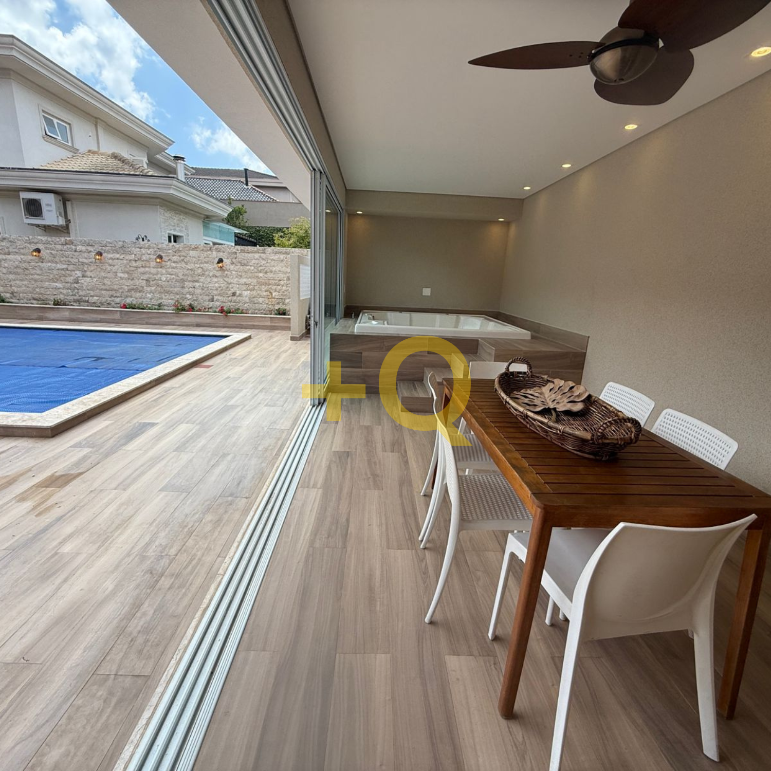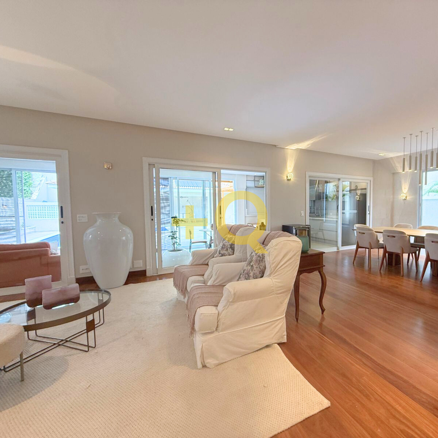 Com 600 m² de terreno e 494 m² de área construída, o imóvel apresenta uma planta bem distribuída, ambientes amplos e área de lazer completa integrada ao jardim.