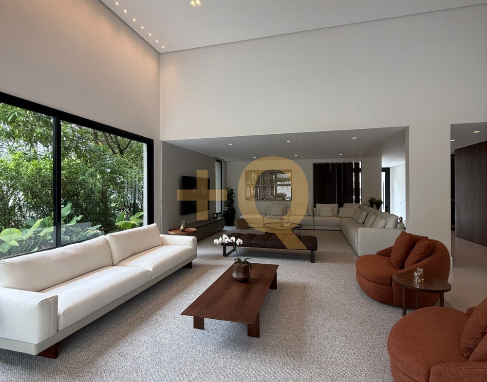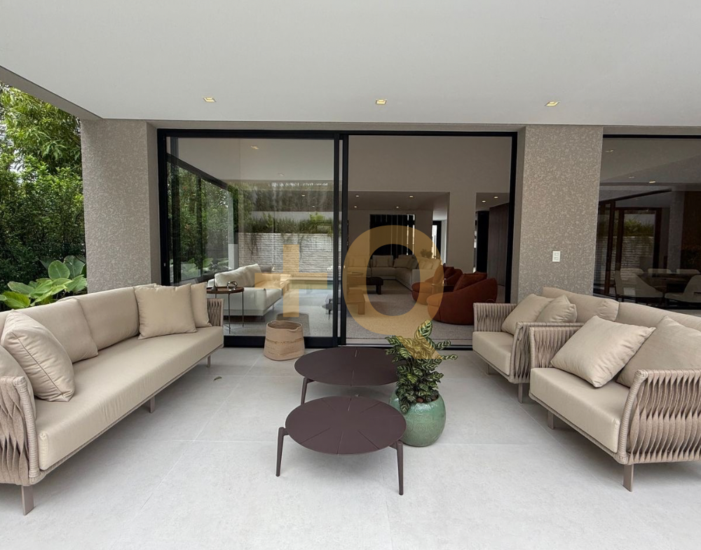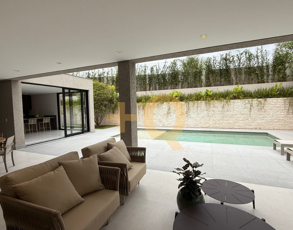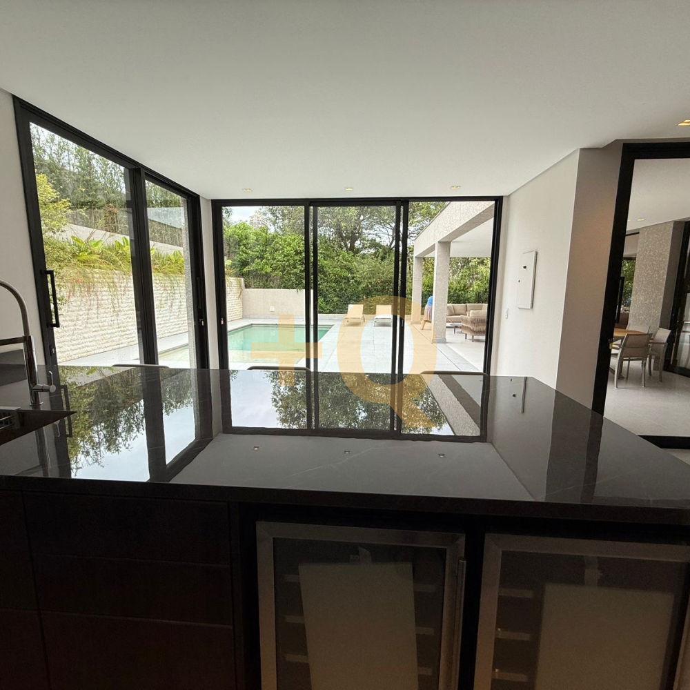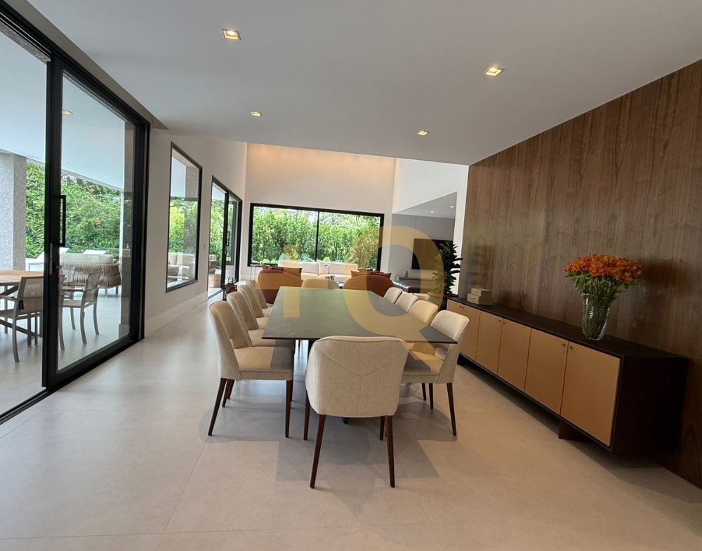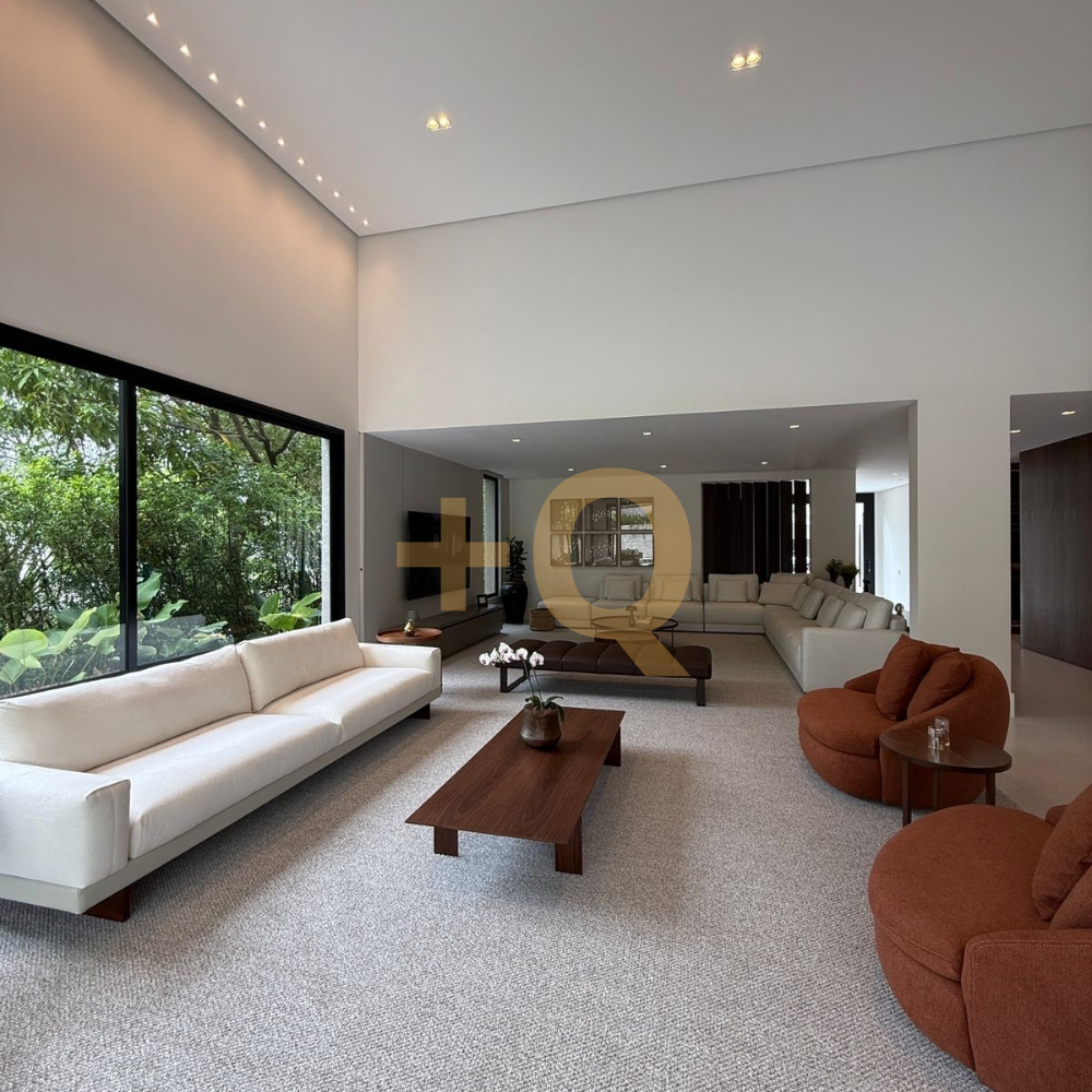 Casa de alto padrão à venda no Residencial 18 do Forte em Alphaville, com projeto contemporâneo, integração total entre ambientes e conexão direta com área verde do condomínio.