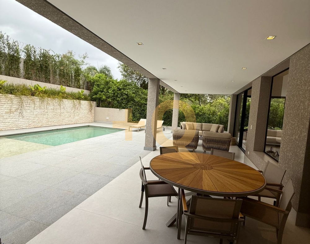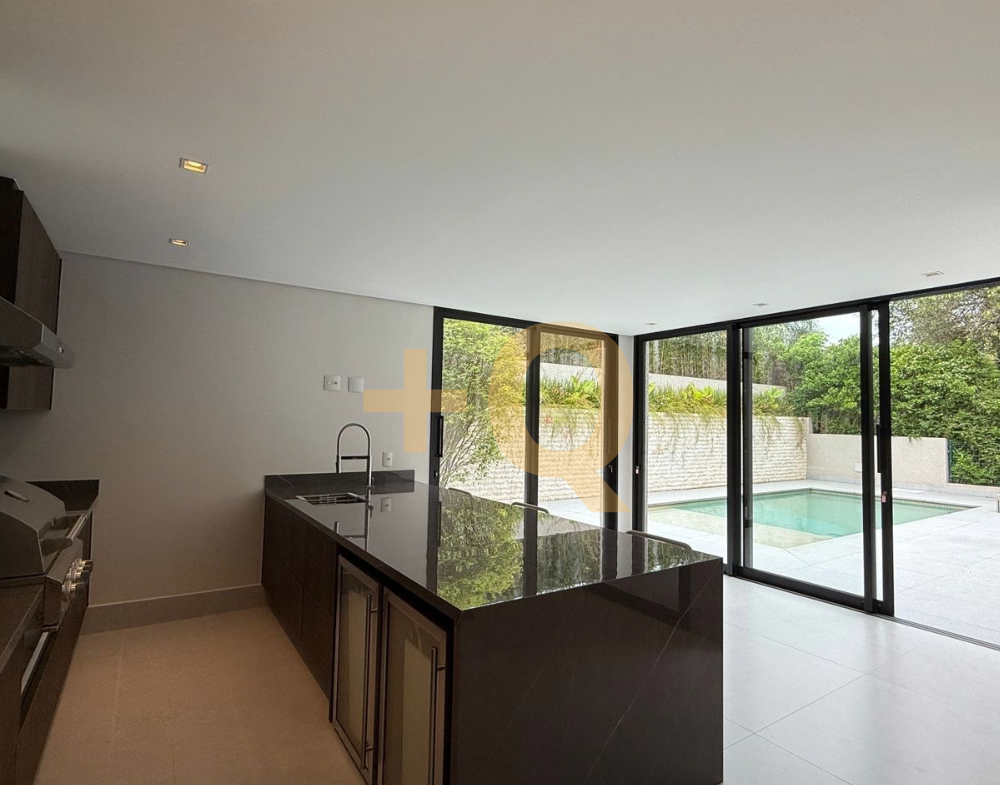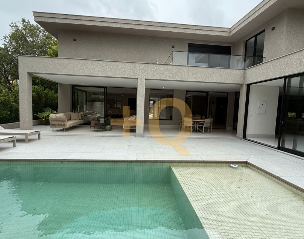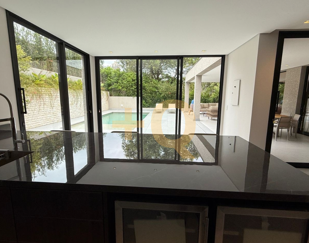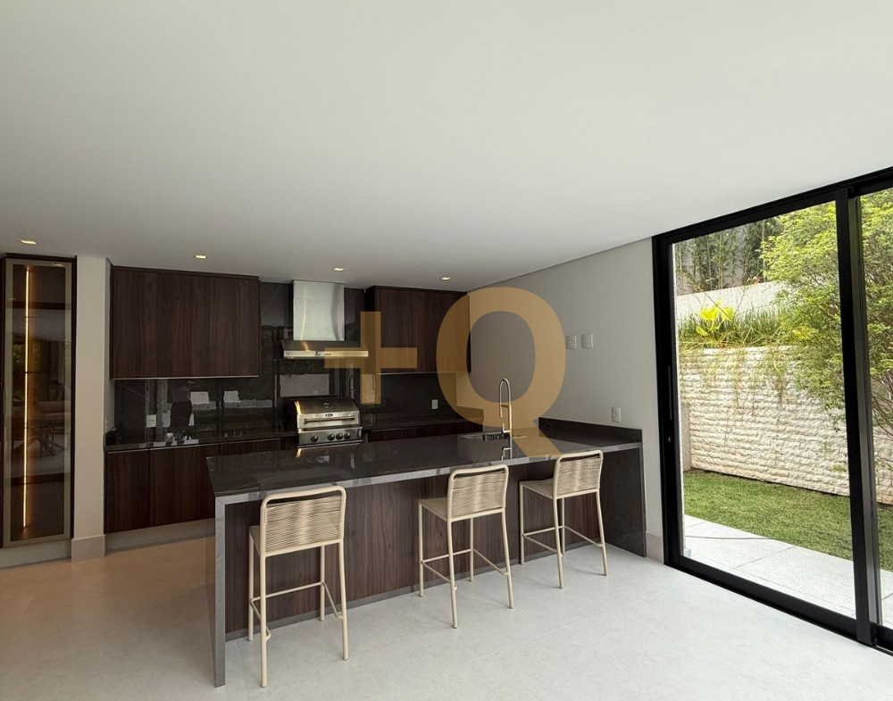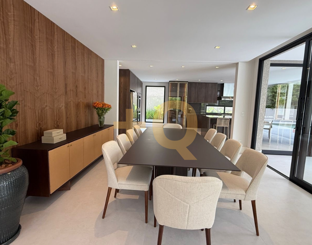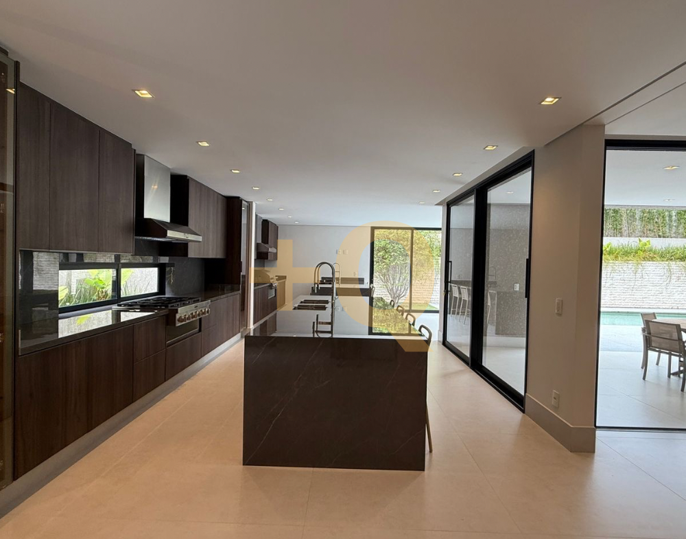 Casa de alto padrão à venda no Residencial 18 do Forte em Alphaville, com projeto contemporâneo, integração total entre ambientes e conexão direta com área verde do condomínio.