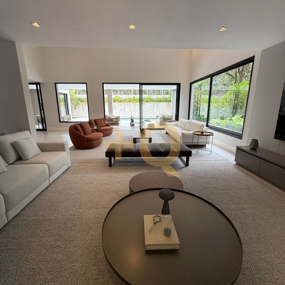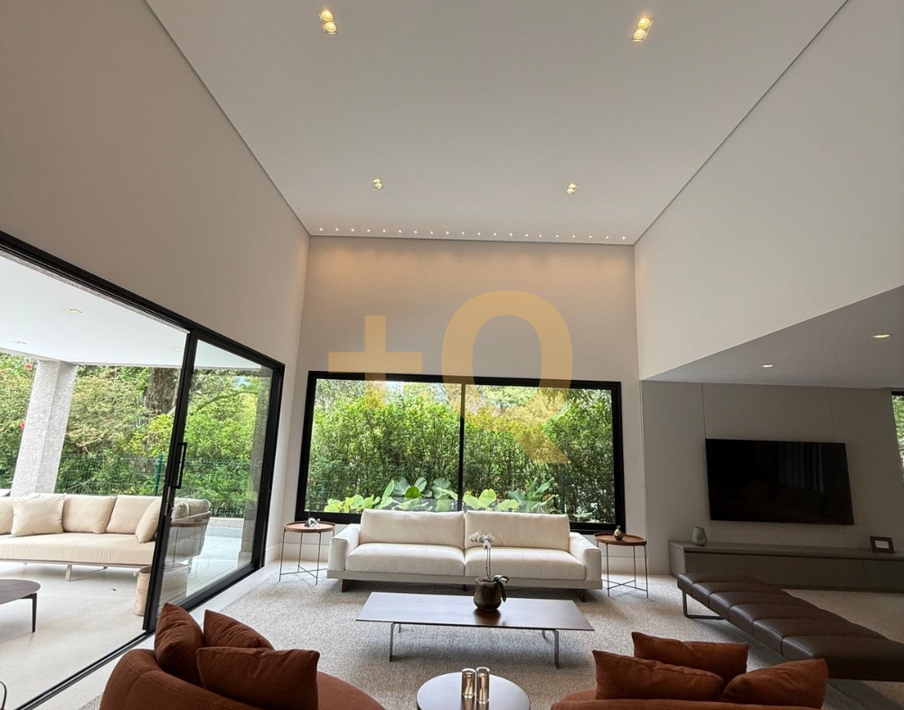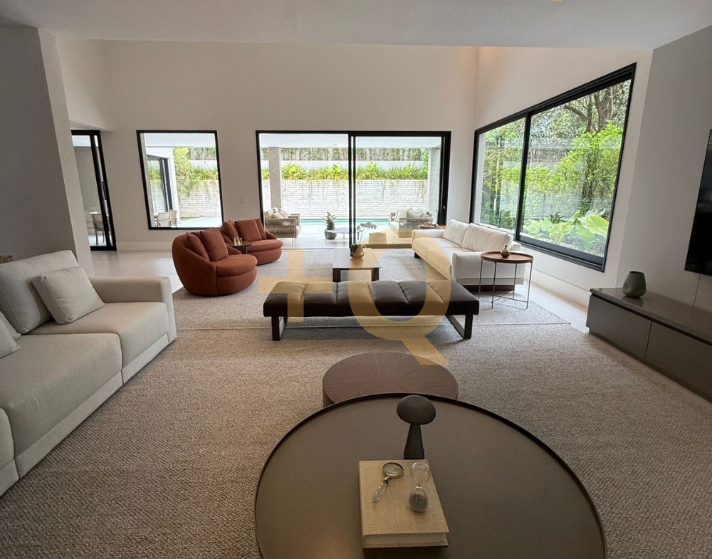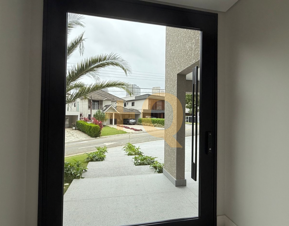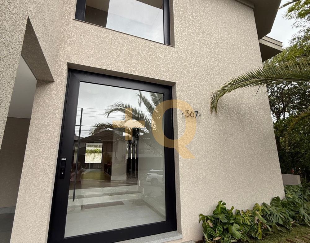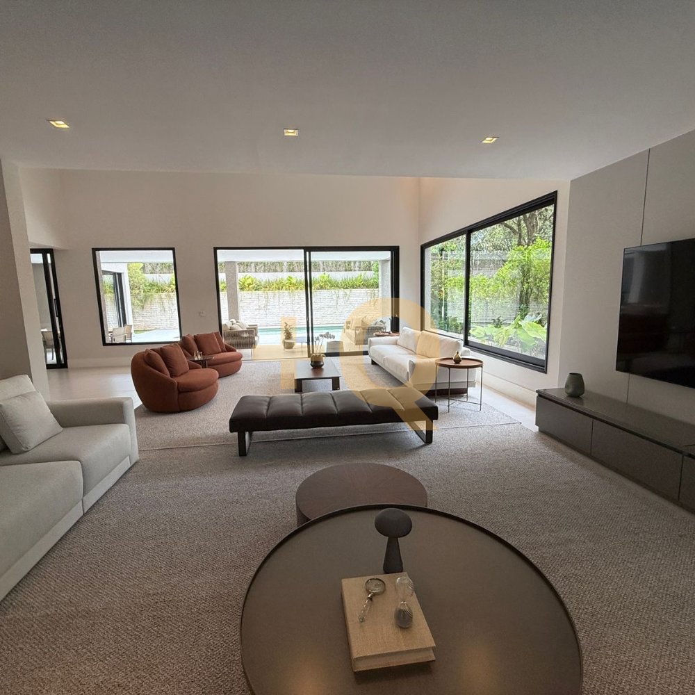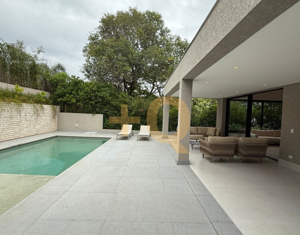 Casa de alto padrão à venda no Residencial 18 do Forte em Alphaville, com projeto contemporâneo, integração total entre ambientes e conexão direta com área verde do condomínio.