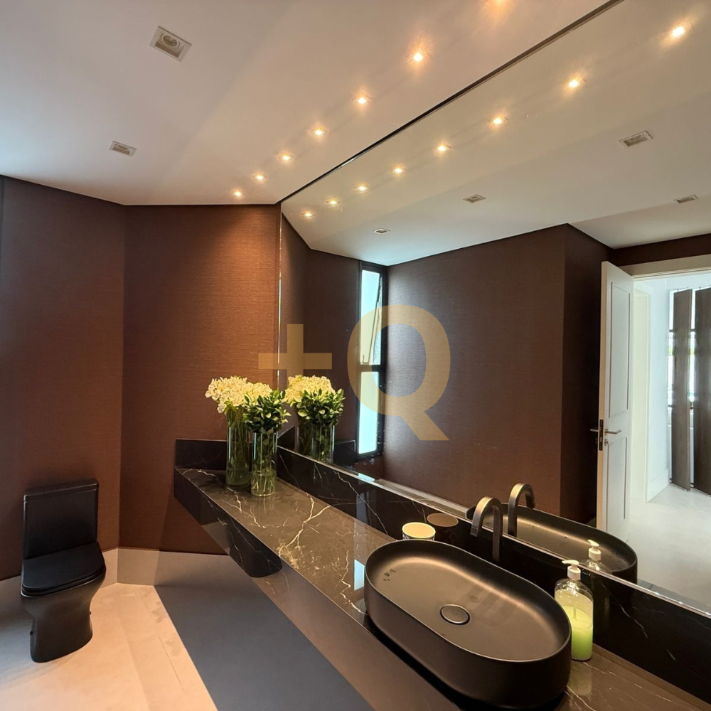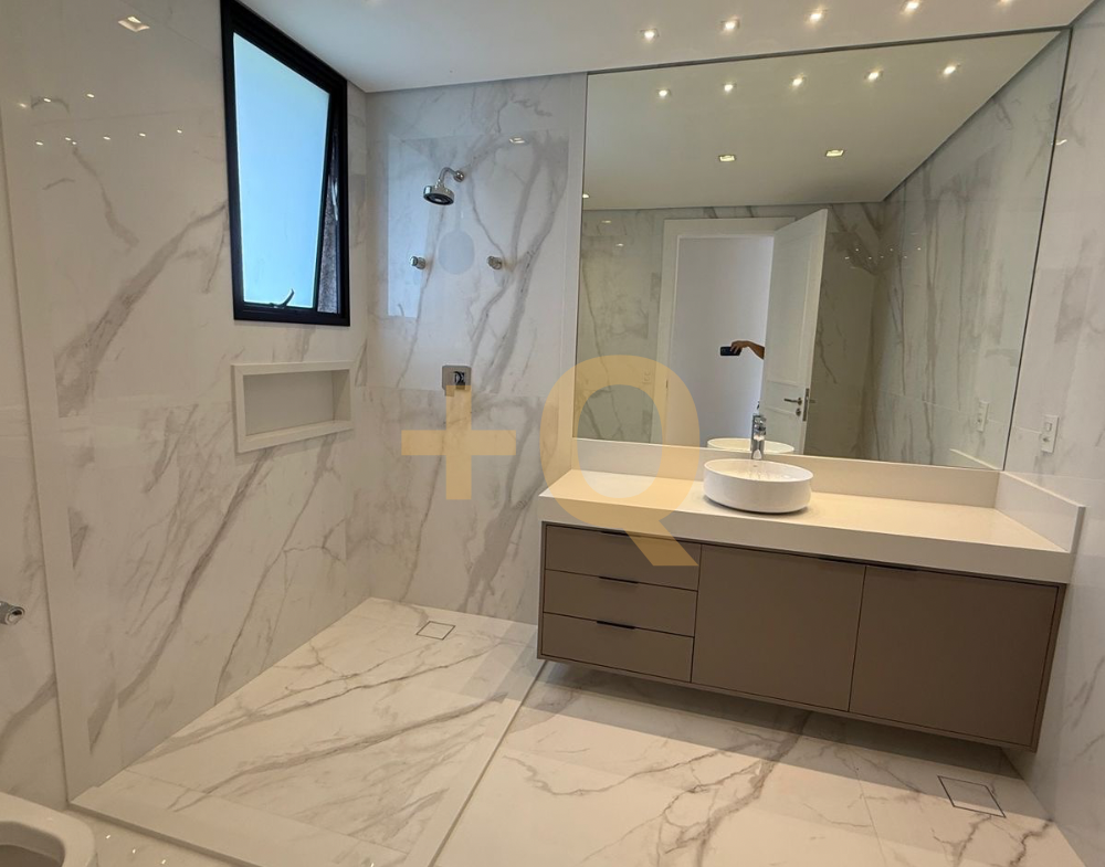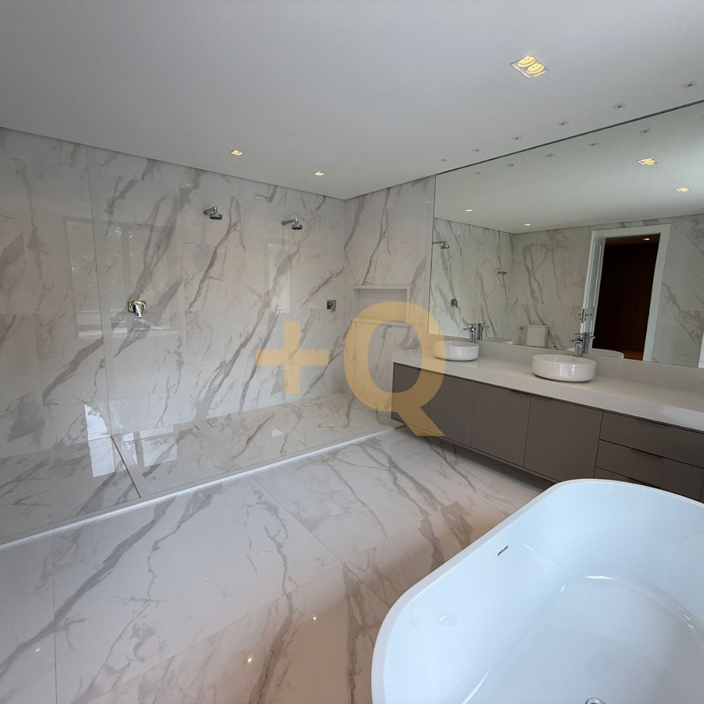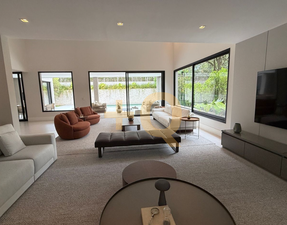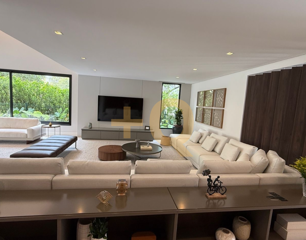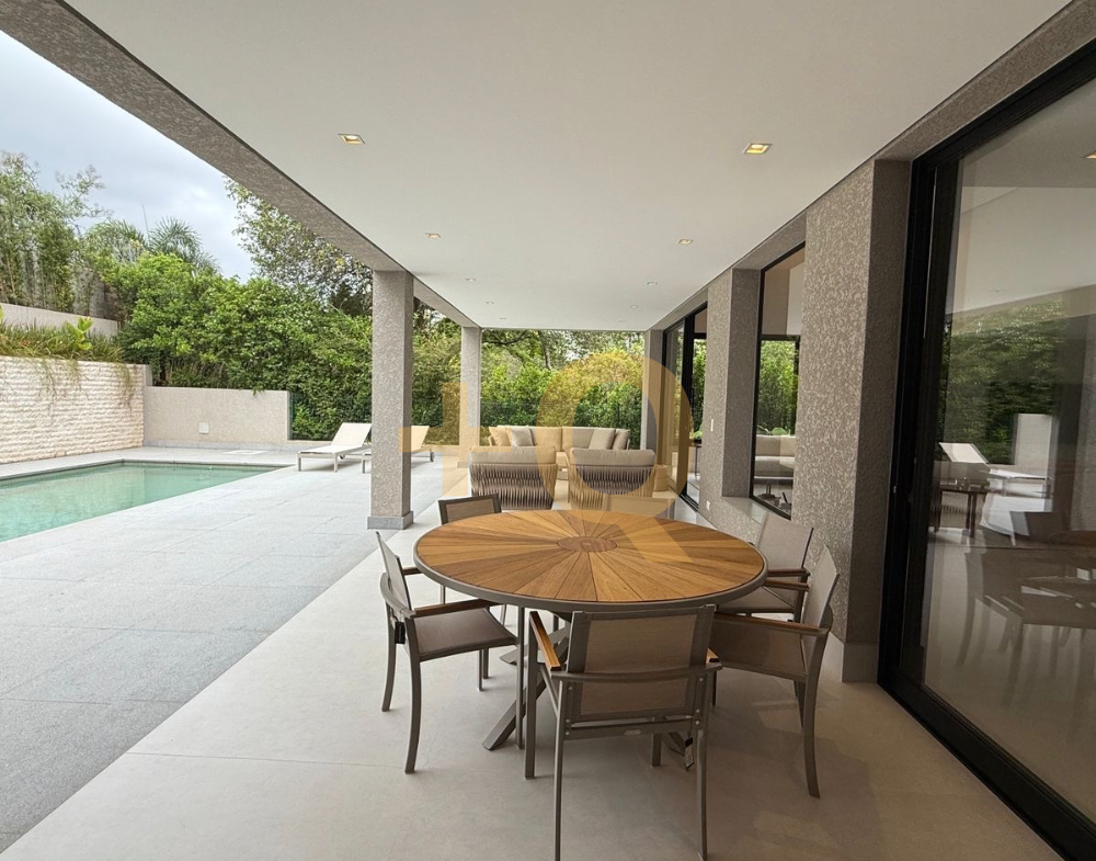 Casa de alto padrão à venda no Residencial 18 do Forte em Alphaville, com projeto contemporâneo, integração total entre ambientes e conexão direta com área verde do condomínio.
