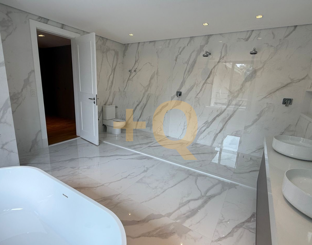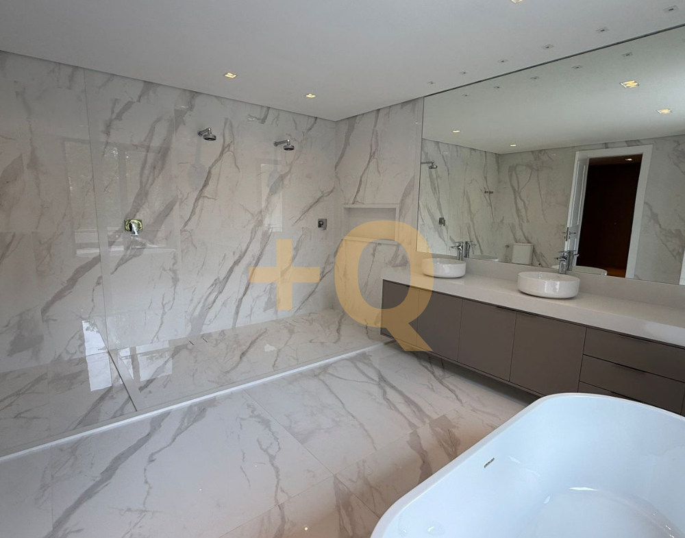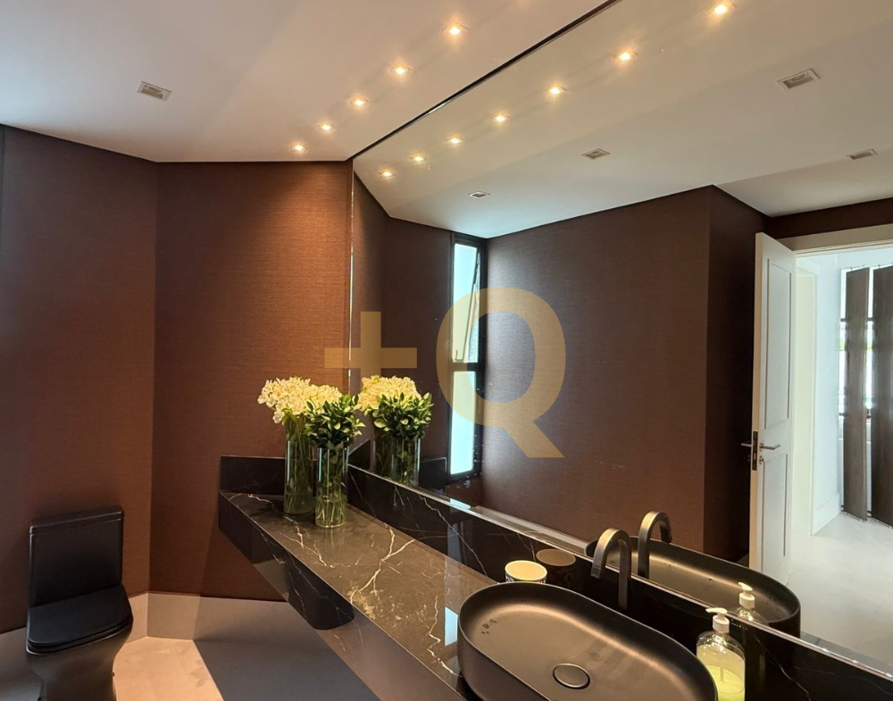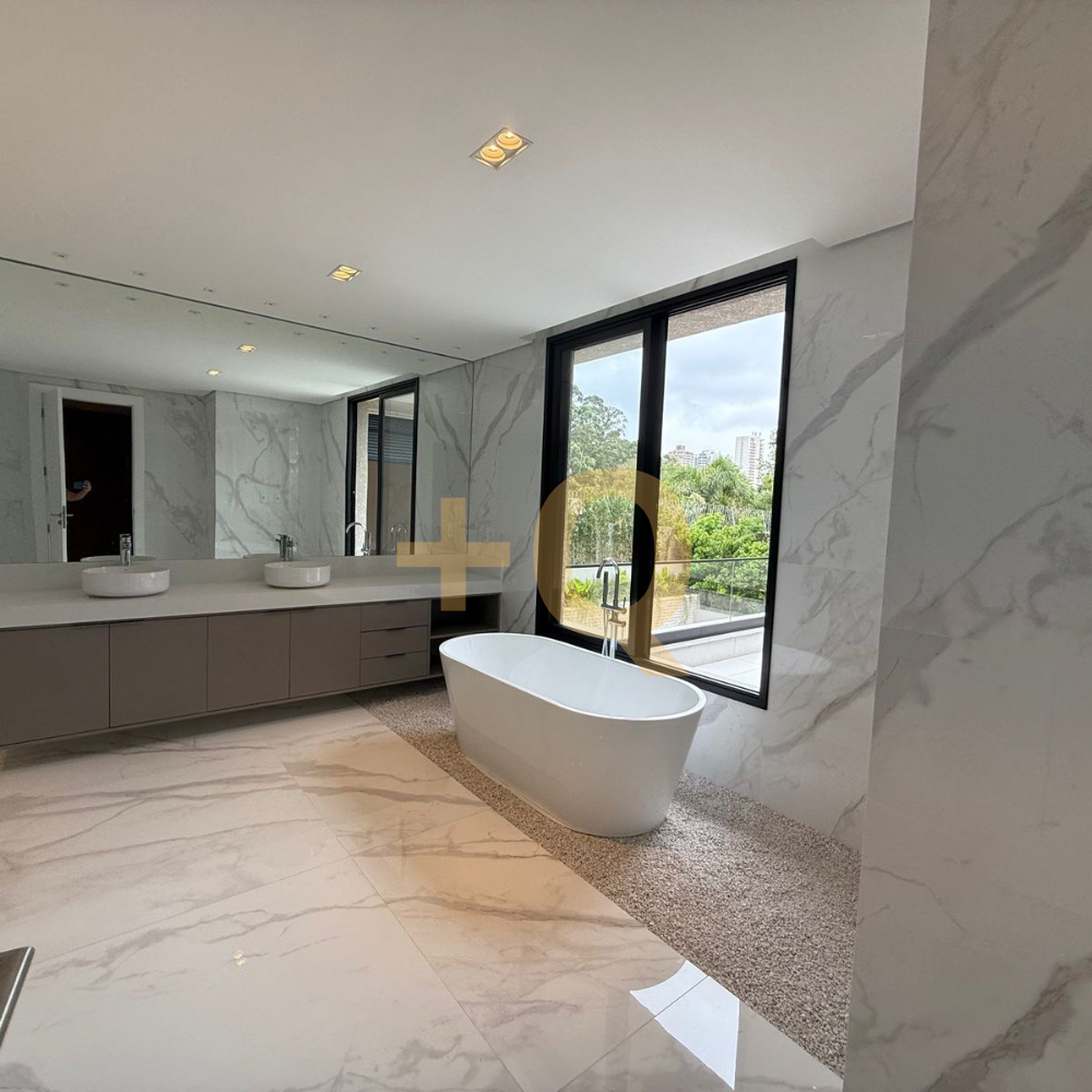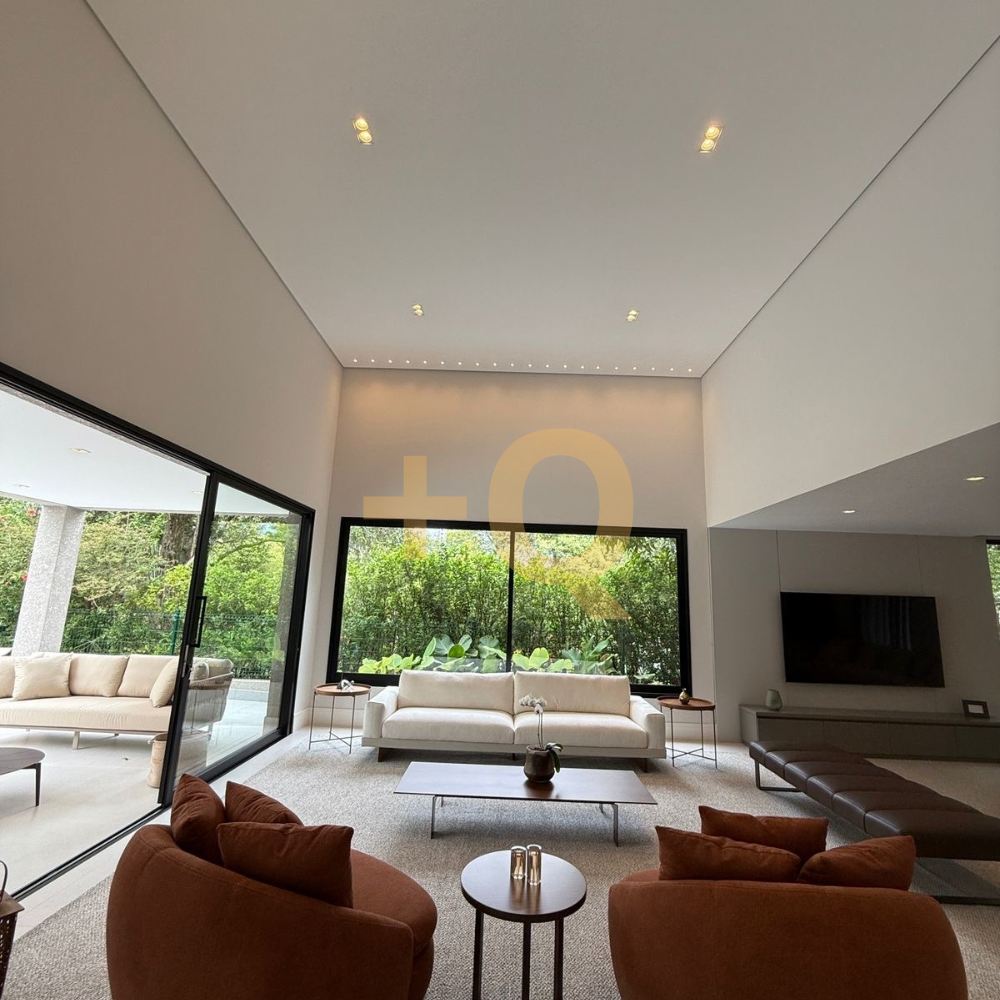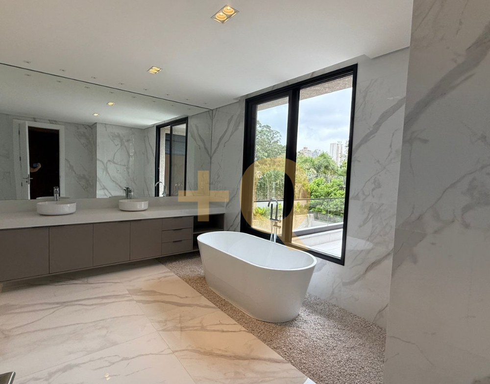 Casa de alto padrão à venda no Residencial 18 do Forte em Alphaville, com projeto contemporâneo, integração total entre ambientes e conexão direta com área verde do condomínio.