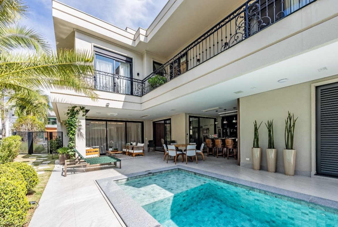 Implantada em terreno de esquina com 502,98 m² e 417,08 m² de área construída, a casa foi planejada nos mínimos detalhes para oferecer sofisticação, funcionalidade e bem-estar em todos os ambientes.