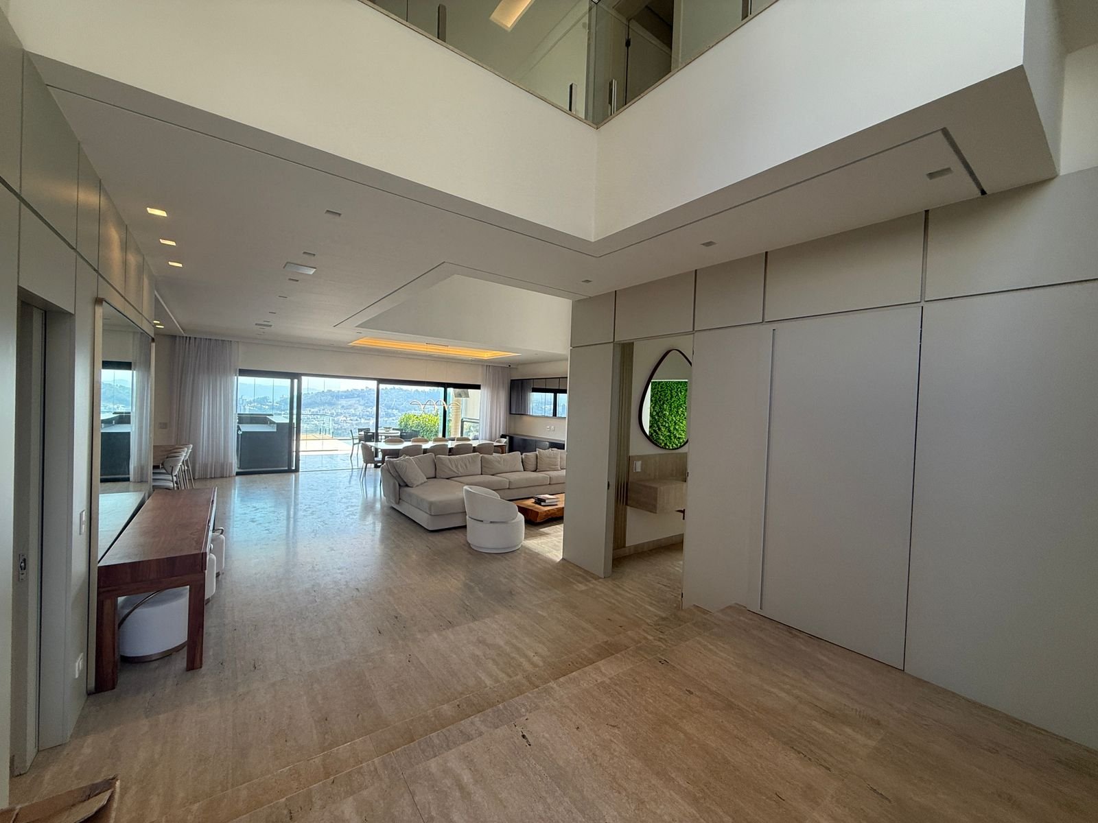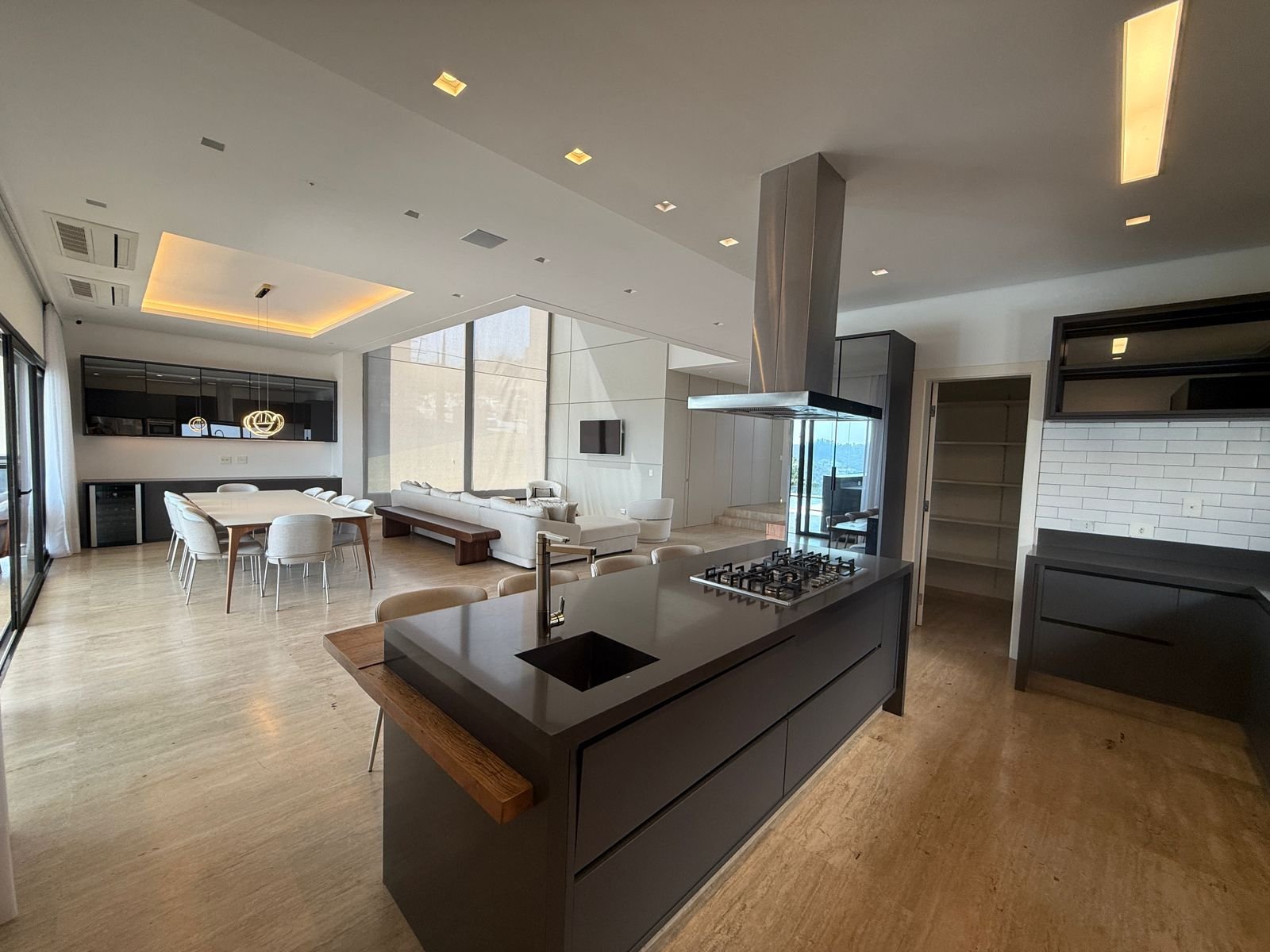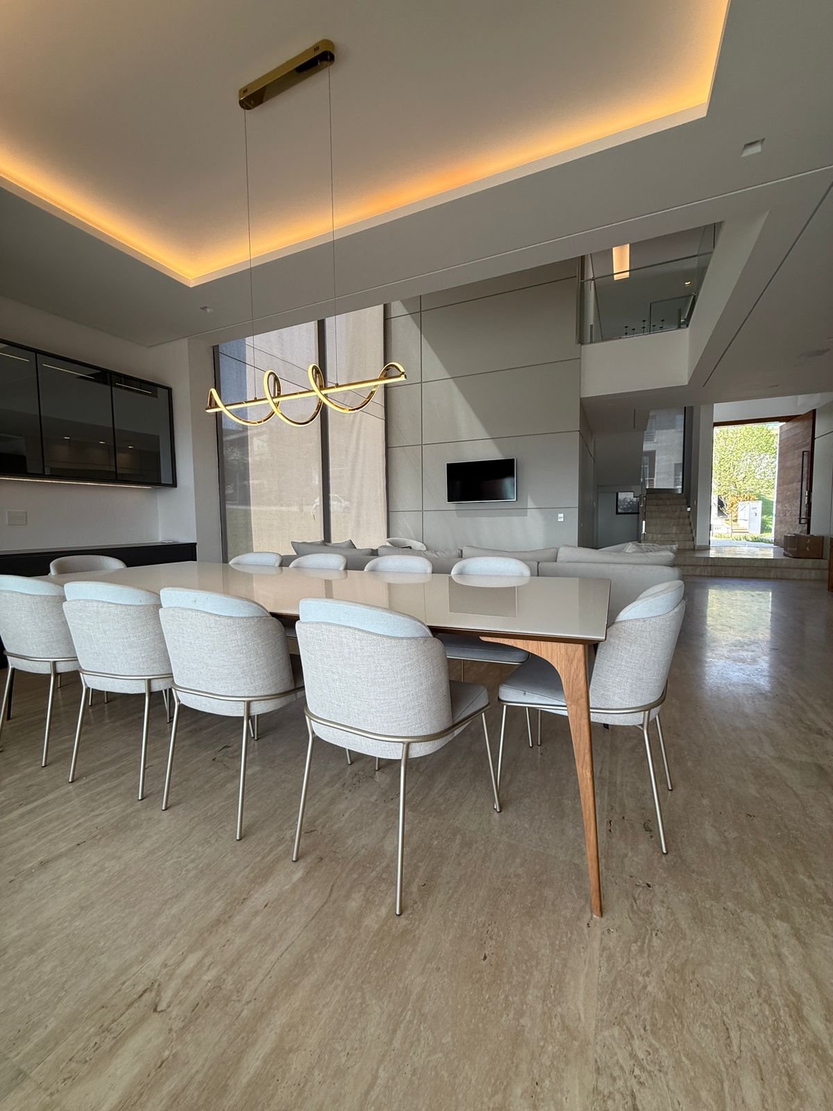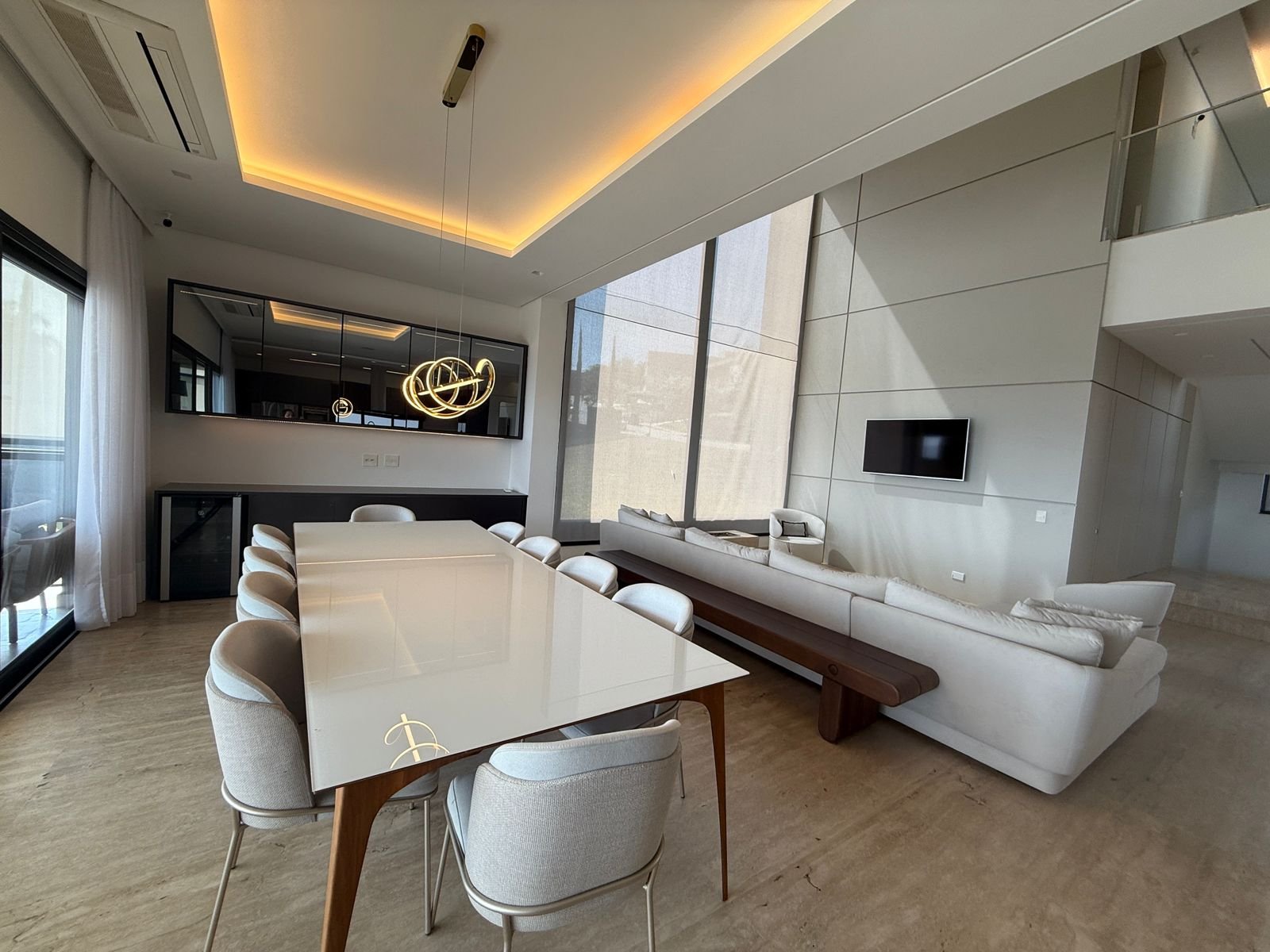 Com 525 m² de terreno e 509 m² de área construída, a casa se destaca pela imponência do pé-direito duplo, pela fluidez dos ambientes e pela integração perfeita entre áreas sociais e de lazer.